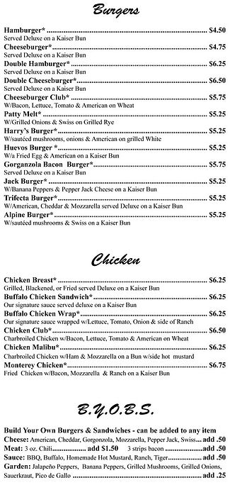 Opening at noon, Harry's isn't only busy at night. The extensive menu (as seen to the left) makes for a great lunch spot or mid-day hangout. Throught the years, this establishment has become a part of Purdue's character, and that can easily be seen by the "Go Ugly Early!" and "Harry's Chocolate Shop" merchandise on students throughout campus.